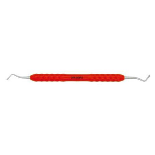 Amalgam Plugger, Ergonomic and Autoclavable Silicone Handle Instrument, OR3. These Amalgam Pluggers are designed with the dentist in mind. These high quality instruments feature a lightweight but wider diameter handle with silicone grips to help reduce hand and wrist fatigue. They provide unique tactile sensitivity, control and color identification. The ends are serrated. End widths are 1.3m and 2.2mm, respectively.