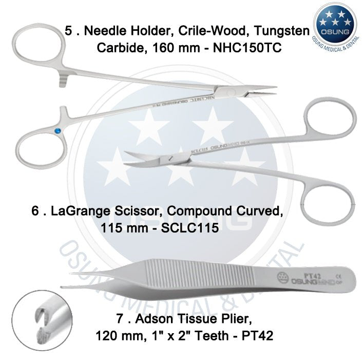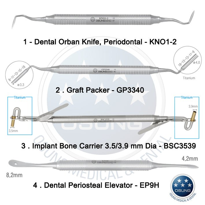 Bone Grafting Kit. It includes most common dental surgery instruments needed for bone grafting procedure. Kit includes 10 instruments (including sterilization cassette)
