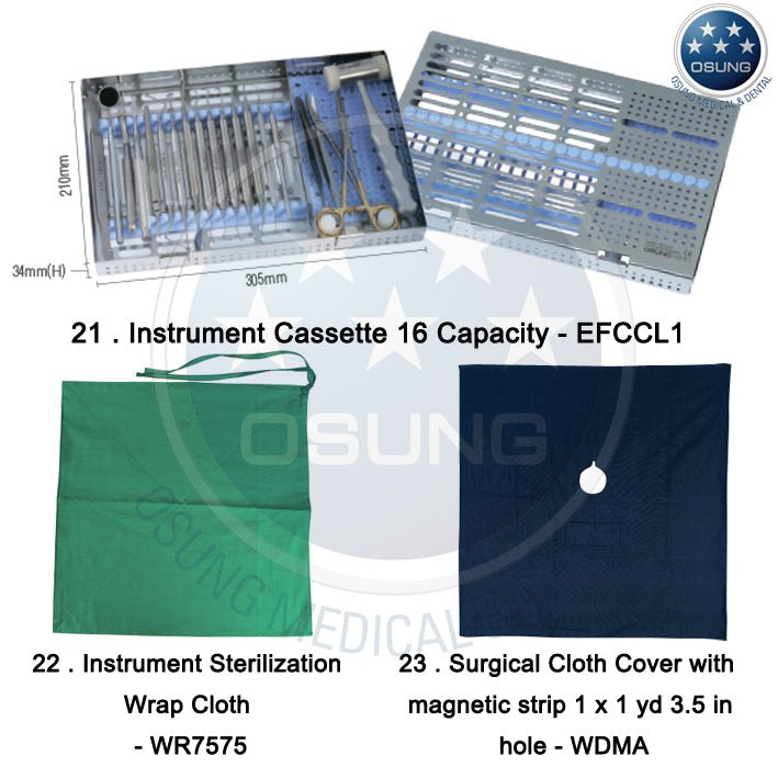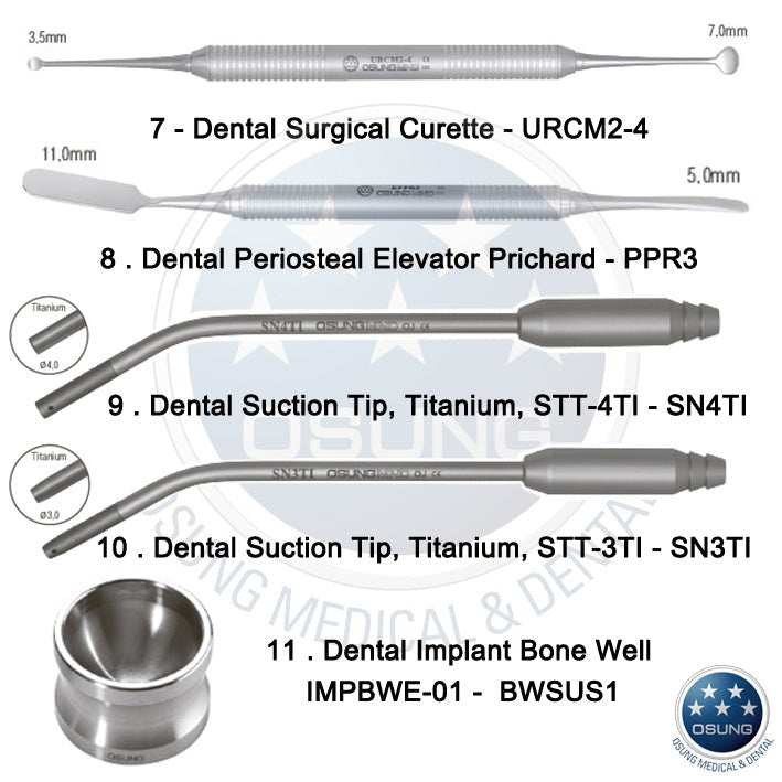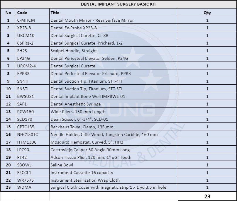 Basic Dental Implant Surgery Kit. Includes most common dental instruments required during an implant procedure. Kit includes 23 instruments.