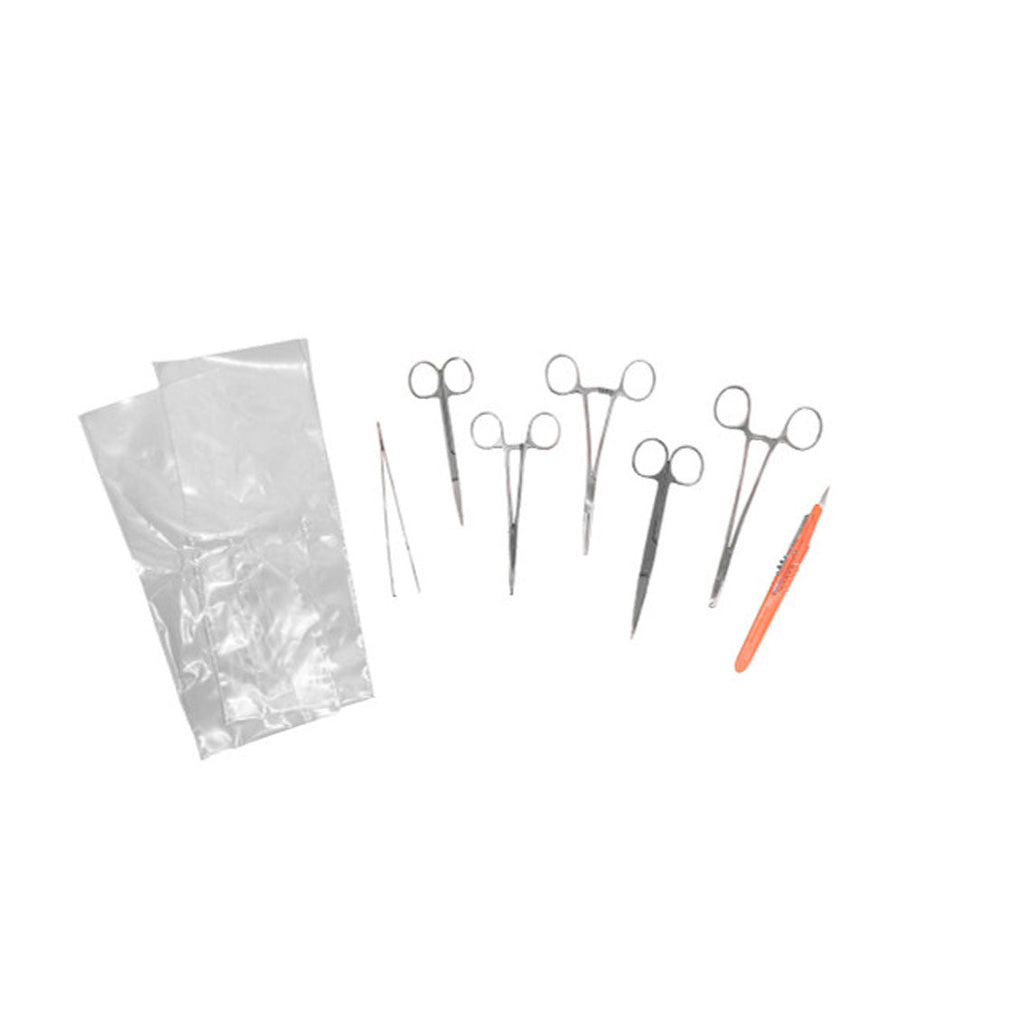 Tray Includes: 18G X 1½" Needle, 19G X 1½" Needle, 22G X 1½" Needle, 25G X 5/8" Needle, (4) 5Cc Luer-Lok Syringe, (4) 5Cc Luer-Lok Syringe, #15 Disposable Scalpel, 4½" Curved Iris Scissors, 5½Z' Straight Metzenbaum Scissors, 5" Straight Mosquito Forceps, 5" 1X2 Thumb Tissue Forceps, 4¾" Adson Tissue Forceps, 5½" Smooth Webster Needle Holder, 5½" Grooved Director Tongue, 5" Probe W/Eye, Castro Viejo Eyelid Retractor, (2) 5" Curved Mosquito Forceps, 2" X 3½" Glassine Midget Bag, (2) Instrument Pack Pouch, 9" X 5" X 2" Tray, 24" X 24" Csr Wrap, 10" X 15" Header Bag.