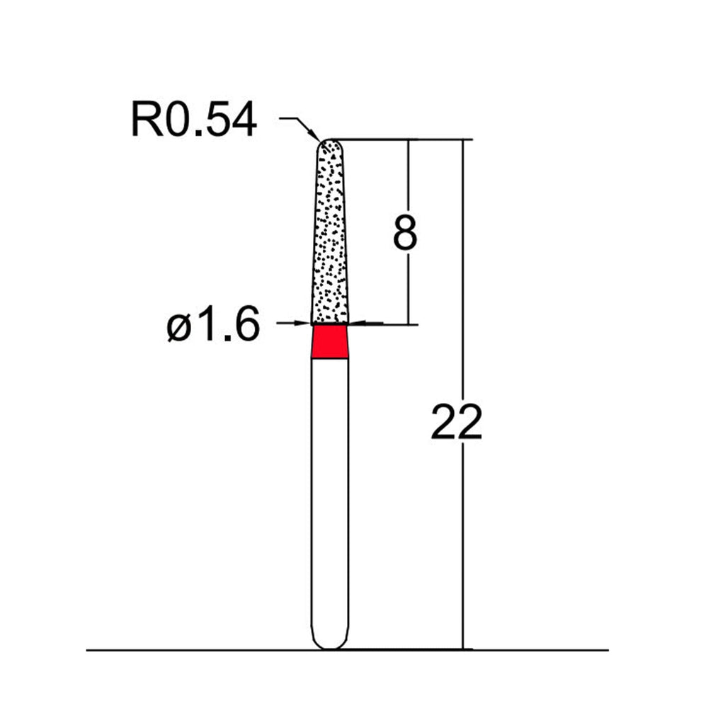 194.16F7, CONICAL, DOME END, 1.6 MM DIA, FINE GRIT DIAMOND BUR, 5 PER PACK