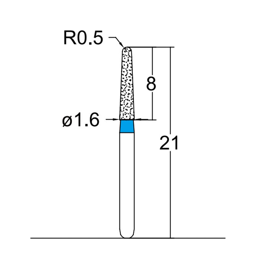 194.16M2, CONICAL, DOME END, 1.6 MM DIA, MEDIUM GRIT DIAMOND BUR, 5 PER PACK