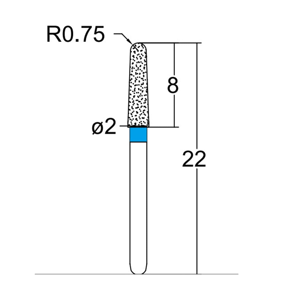 194.20M2, CONICAL, DOME END, 2 MM DIA, MEDIUM GRIT DIAMOND BUR, 5 PER PACK