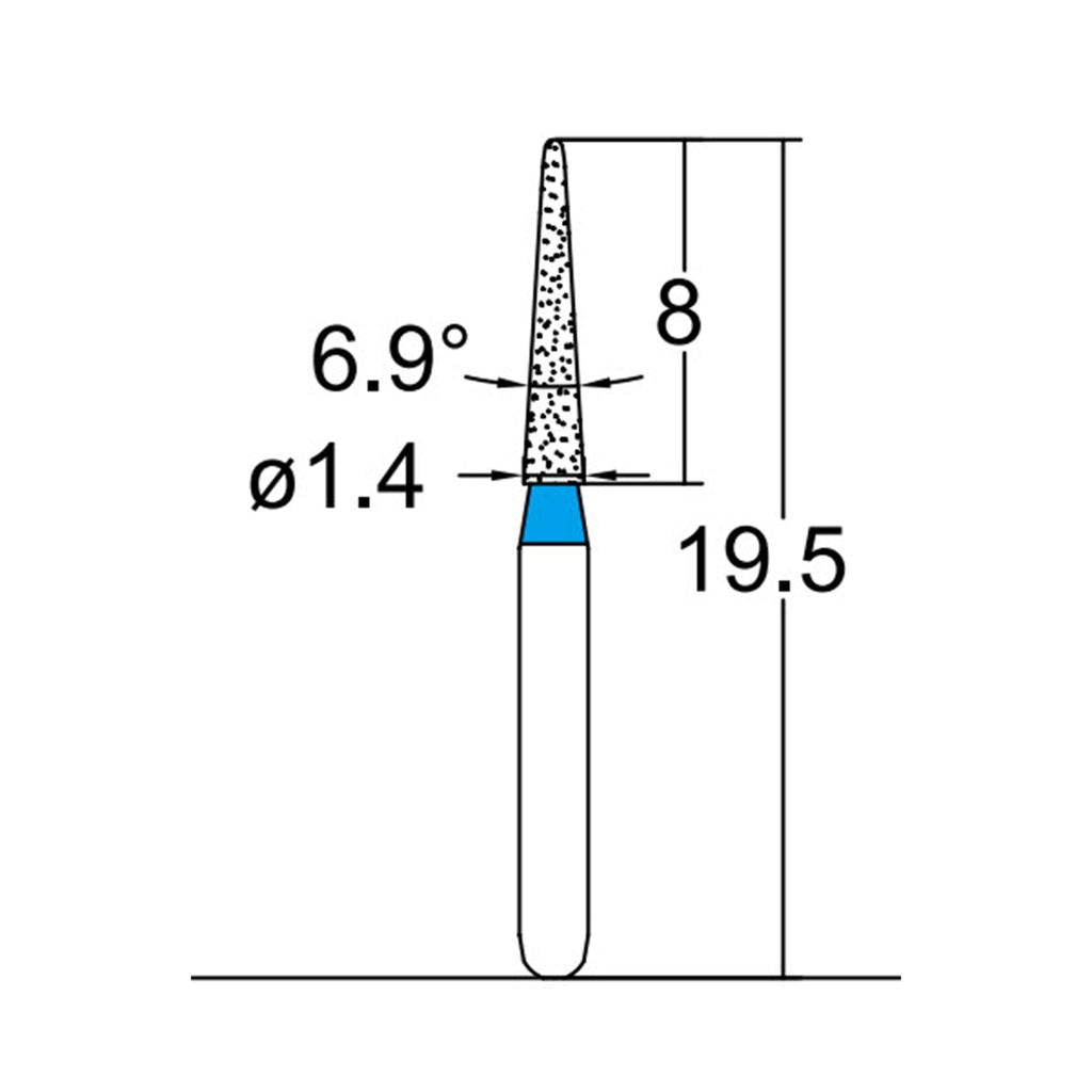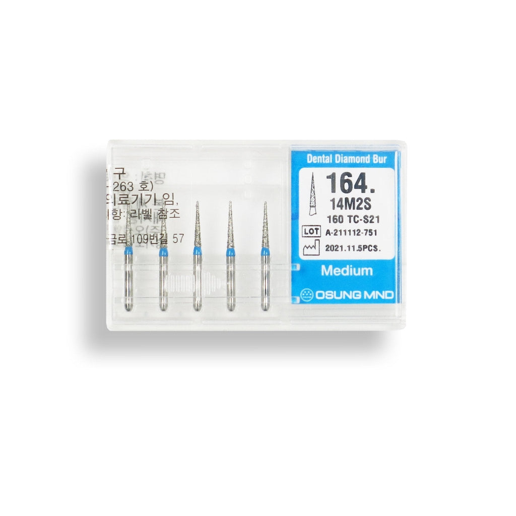164.14M2S, CONICAL POINTED, SLENDER, 1.4 MM DIA, MEDIUM GRIT DIAMOND BUR, 5 PER PACK