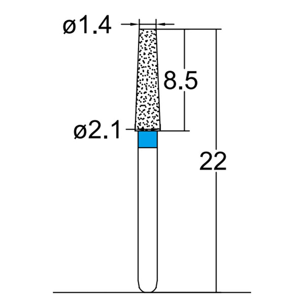 168.21M2, CONICAL, TRUNCATED, 2.1 MM DIA, MEDIUM GRIT DIAMOND BUR, 5 PER PACK