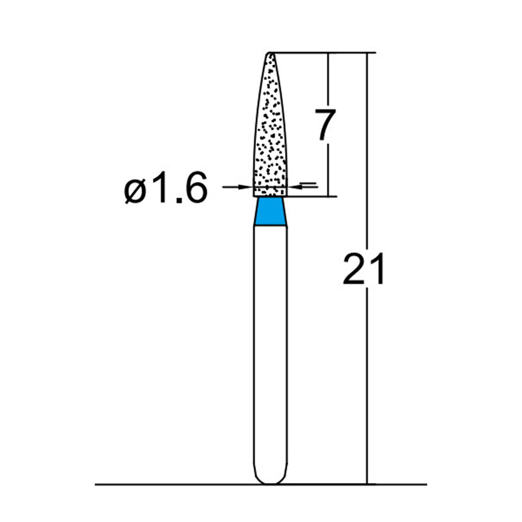 245.16M1, CYLINDRICAL, OGIVAL END, 1.6 MM DIA, MEDIUM GRIT DIAMOND BUR, 5 PER PACK