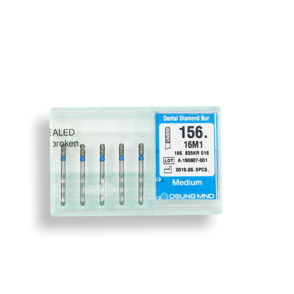 156.16M1, CYLINDRICAL, ROUNDED EDGE, 1.6 MM DIA, MEDIUM GRIT DIAMOND BUR, 5 PER PACK