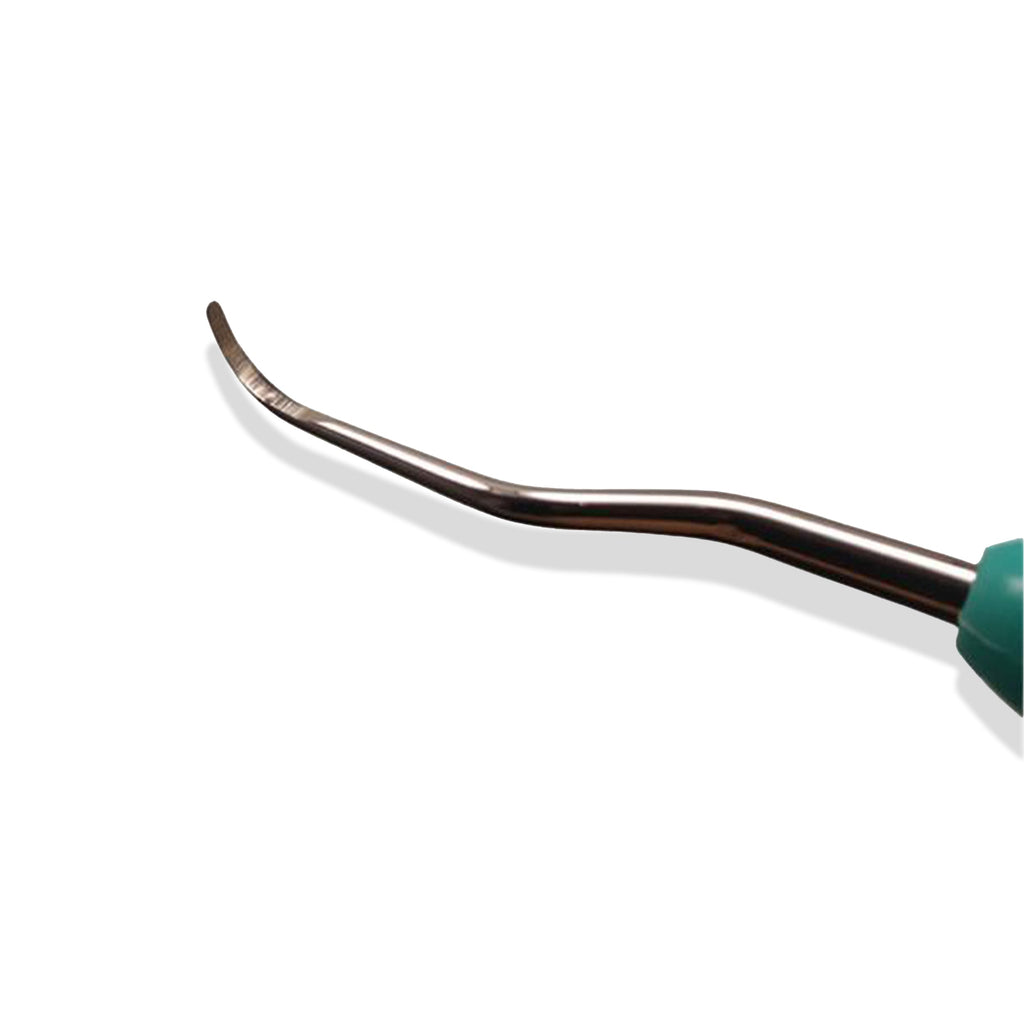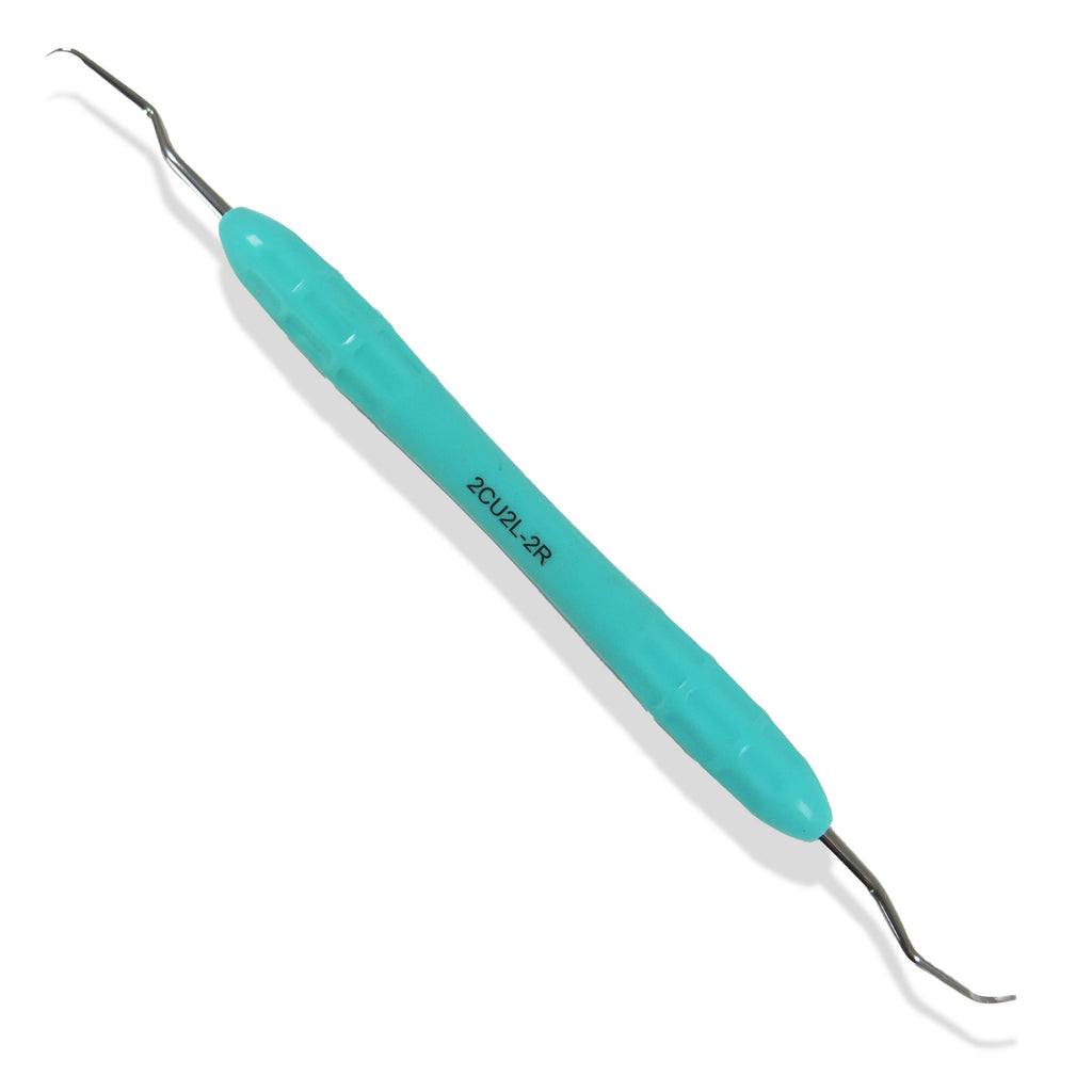Dental Curette, Universal, Columbia, Silicone, 2CU2L-2RDental Curette, Universal, Columbia, Ergonomic and Autoclavable Silicone Handle Instrument, 2L-2R. Curettes are used supragingivally and subgingivally on enamel and root surfaces. There are two major sub-types of curettes: universal curettes and area-specific curettes. Universal curettes can be used to remove medium sized and small calculus deposits. This curette is used for removal of minor calculus of incisors and premolars. For supra and sub gingival. European Type. Product Code: sC2L-2R