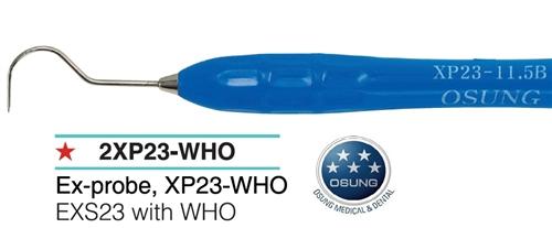 Dental Ex-probe, Ergonomic and Autoclavable Silicone Handle Instrument, XP23-11.5B. This Ex-Probe is an excellent instrument for dental diagnostics. It has an explorer tip (EXS 23) on one end and a Ball-End probe tip (CP 11.5B) on the other. The ball end probe tip has marking 3.5, 5.5, 8.5, 11.5 mm. Ball-End probe increases tactile sensitivity and gives a more accurate picture of gingival pocket depth. Also, it does not damage the tissue. The black coding marks are permanent and stays in place even after sterilization.