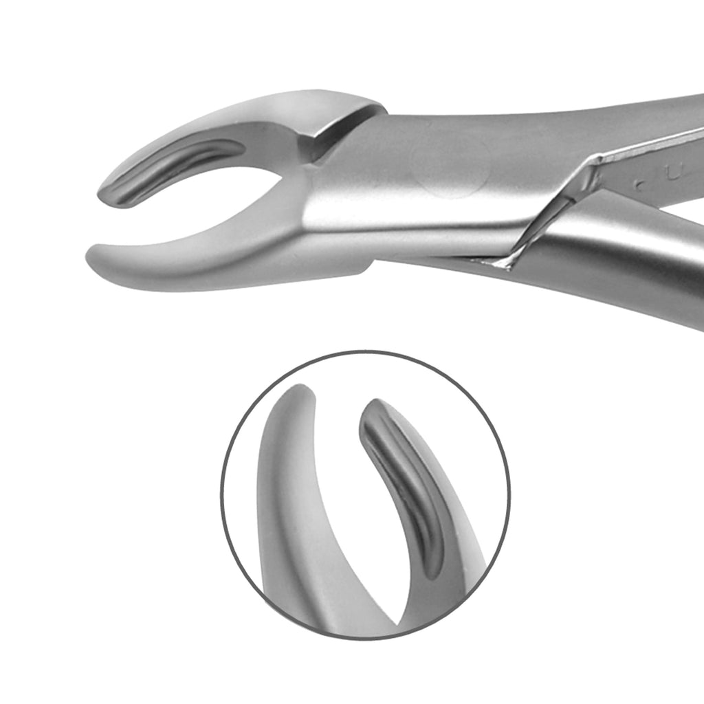 It is specially designed for children patients. When a user grasps the forceps, the forceps are mostly covered by hand in visual. So children are not afraid of the instrument during extracting.