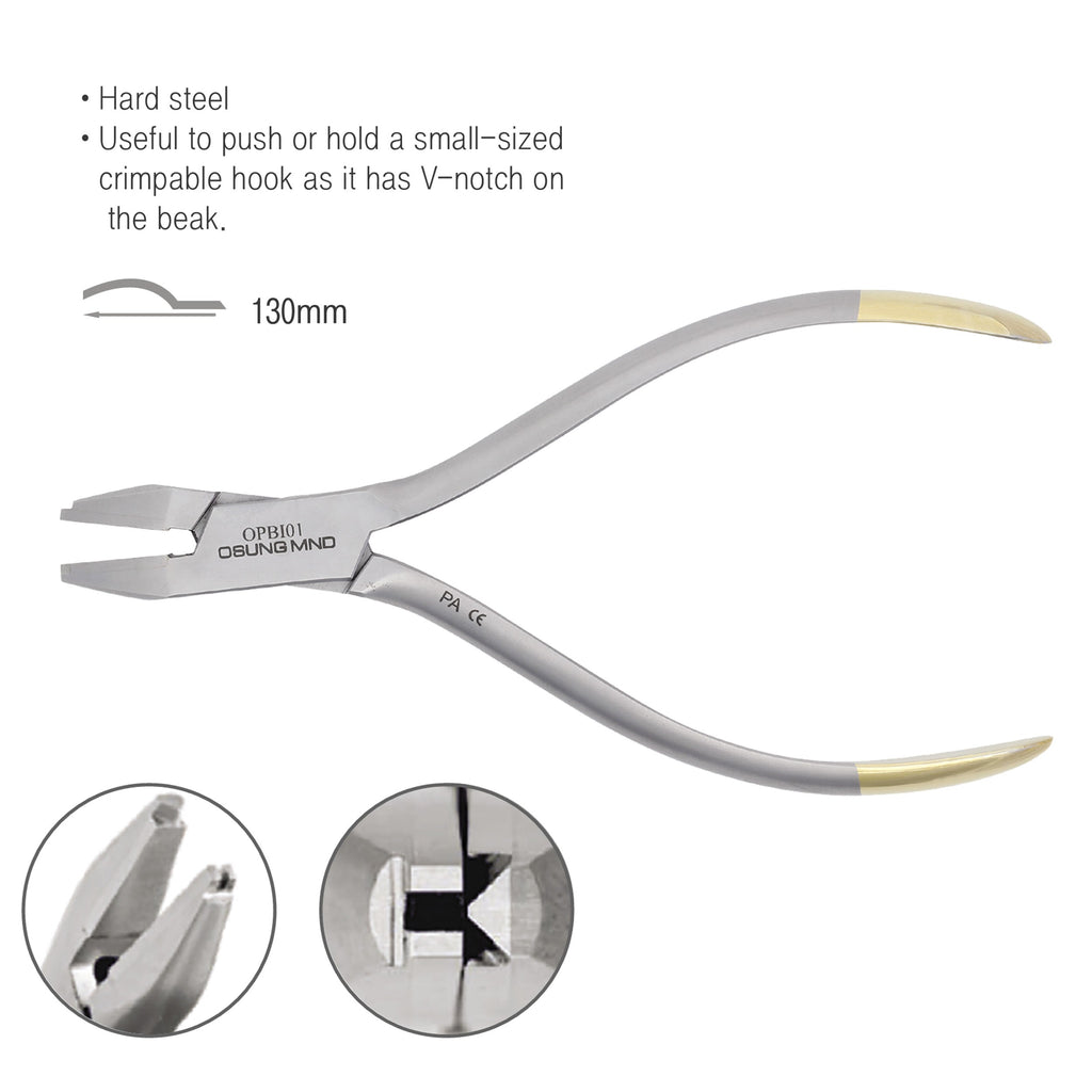 - Useful to push or hold a small-sized crimpable hook as it has V-notch on the beak.