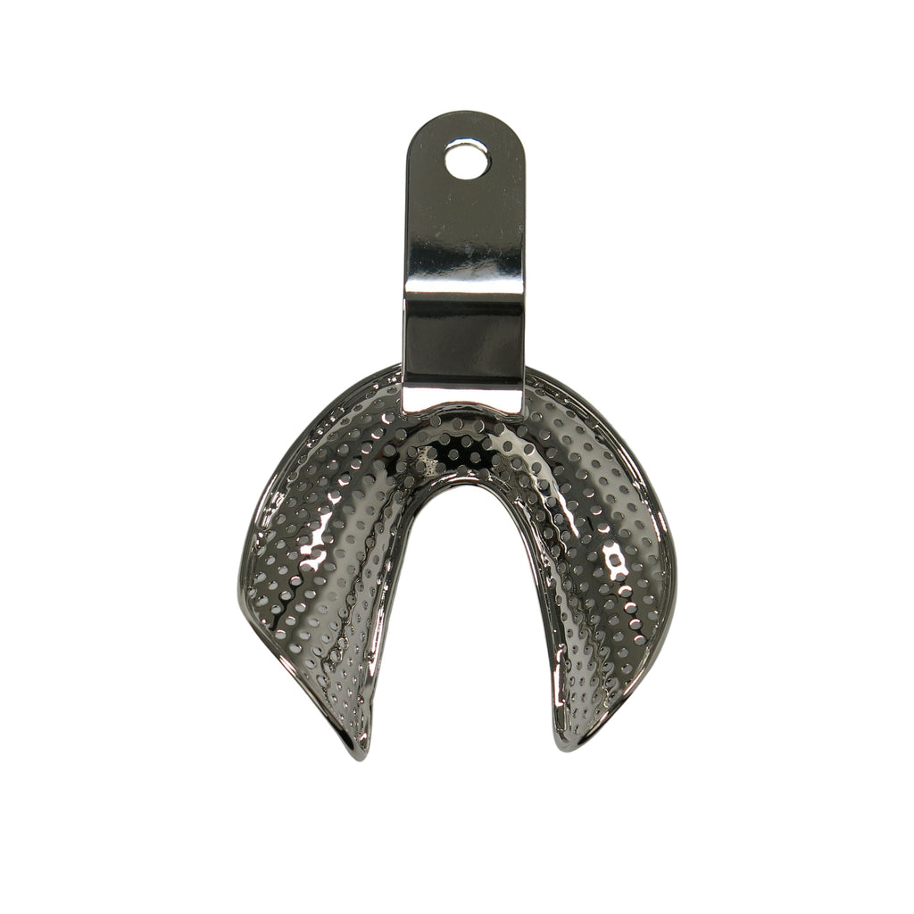 Impression Tray, Edentulous, Ni-Brass, L LOWER. EDENTULOUS SIZE-L LOWER Impression Tray. This is the most popular pattern of the market. Made from qualify nickel-plated brass. It provides ideal dentulous impression. Product Code: D-TBE-04