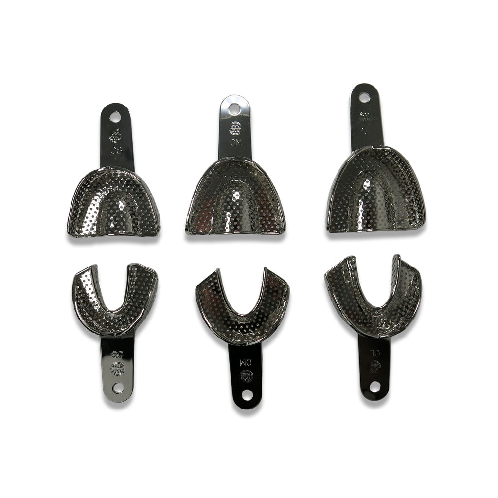 Dental Impression Tray Set, Orthodontia, 6 pc, TBOZ6Impression Tray Set, Orthodontia, 6 pc, Ni-Brass, D-TBOO-01. Set of 6 Nickel-Plated Brass ORTHODONTIA SIZE Impression Trays (OL, OM, OS-Upper and Lower). These are the most popular patterns of the market. Made from qualify nickel-plated brass. It provides ideal dentulous impression. Product Code: D-TBOO-01
