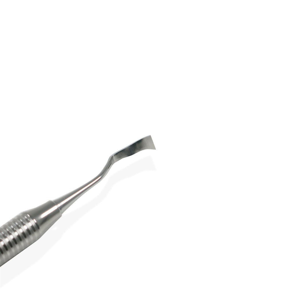 Introducing the Osung Periodontal Chisel CHS13K-13KL. Featuring a curved design and dual tips measuring 3.3mm and 4.9mm, this specialized instrument is crafted for precision in periodontal procedures. Used to delicately remove bone tissue and refine geometric contours, the Osung Periodontal Chisel ensures meticulous results. Elevate your dental practice with Osung's commitment to quality.