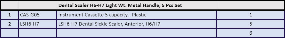 Dental Scaler H6-H7 Light Wt. Metal Handle, 5 Pcs Set