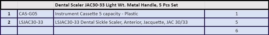 Dental Scaler JAC30-33 Light Wt. Metal Handle, 5 Pcs Set