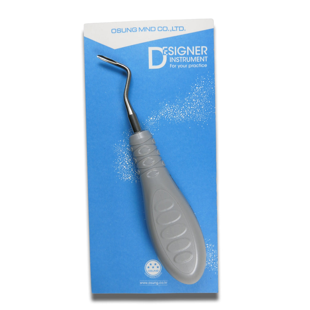 Elevator, Plastic handle, 3EL5The Osung elevator 3EL5 features 3.0mm tip width for deeply seated roots. The elevators have been designed to make extractions less painful by cutting the periodontal ligament by easing the tooth from the socket. The result is less tissue damage, which promotes easy healing and minimum complications. The elevator is used by rocking and cutting, rather prying and lifting like a traditional elevator.