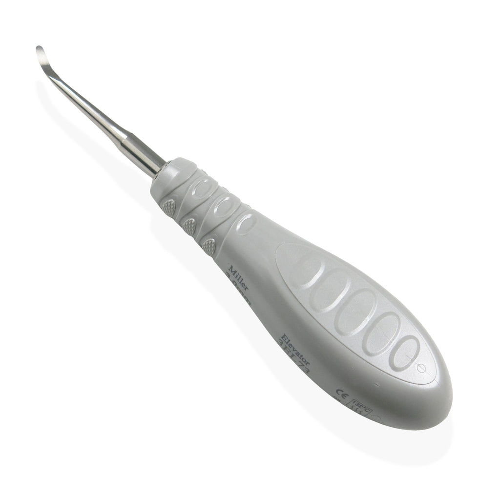 Elevator, Plastic handle, 3EL73Dental elevators help in elevating and loosening the teeth in their sockets before extraction in pursuit of creating space and preventing trauma to adjacent tissues and teeth. The working tip has sharp, thin blades used to cut periodontal ligaments and loosen bone tissue. The shank helps access specific areas in the mouth.