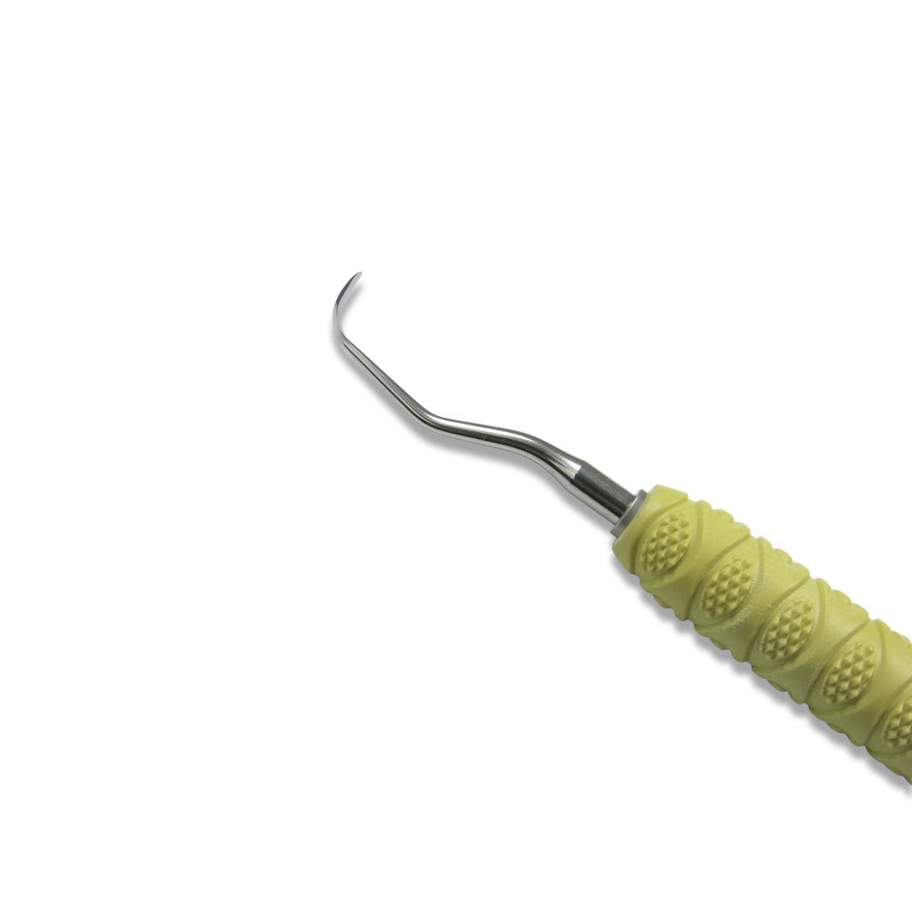 Gracey Curette, Plastic handle, Rigid, 3CRGR5-6Rigid gracey curette is a double-ended dental curette used to remove calculus deposits from posterior teeth. The variation in the blade is specific to the particular region of the tooth surface being cleaned. The 3CRGR5-6 curette is used to clean the anterior and premolar portion of the tooth. The rigid gracey curette features a stronger, thicker shank than the conventional gracey. The curette can be used to remove heavy to moderate calculus.