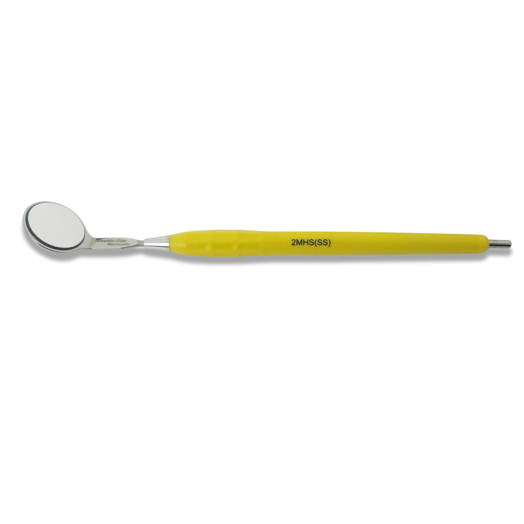 Osung Mouth Mirror, Front Surface Double Side, Simple Stem No. 4 – Dual Clarity with a Vibrant Yellow Handle!