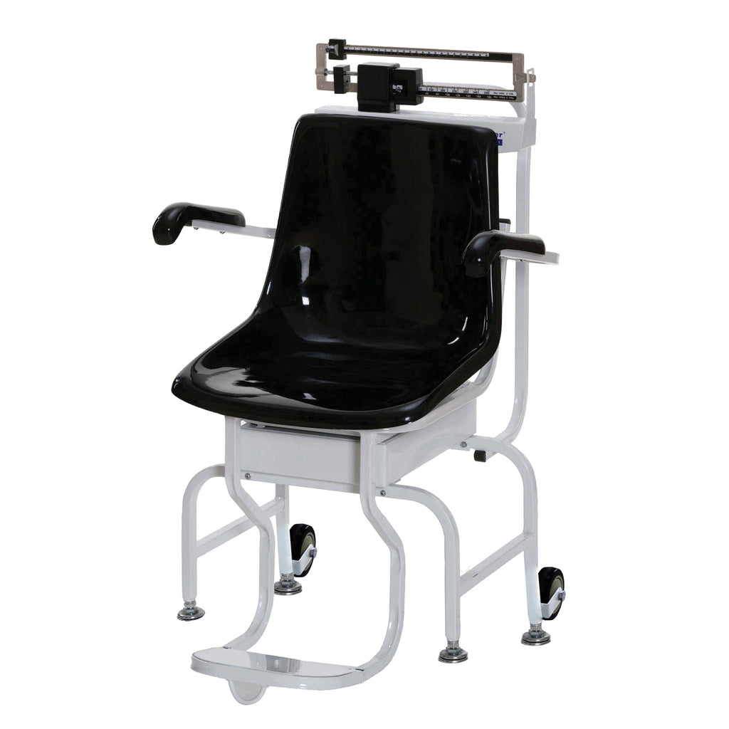 Mechanical Chair Scale, 440 Lb/200Kg Capacity, ¼ Lb/100G Graduation, 15¾" X 18½" X 17¼" Seat Dimensions, Two Wheels, Flip Arm Rest & Foot Rest, 2-Year Warranty (Drop Ship Only)