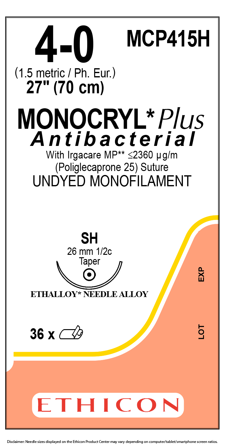Suture, Taper Point, Size 4-0, 27", Undyed Monofilament, Needle Sh, ½ Circle, 3 Dz/Bx, Sold As Box Ethicon 243