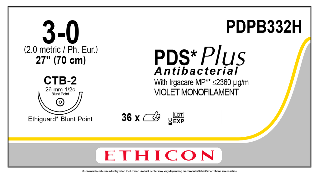 Suture, Ethiguard Blunt Point, Size 3-0, 27", Violet Monofilament, Needle Ctb-2, ½ Circle, 3 Dz/Bx, Sold As Box Ethicon 243