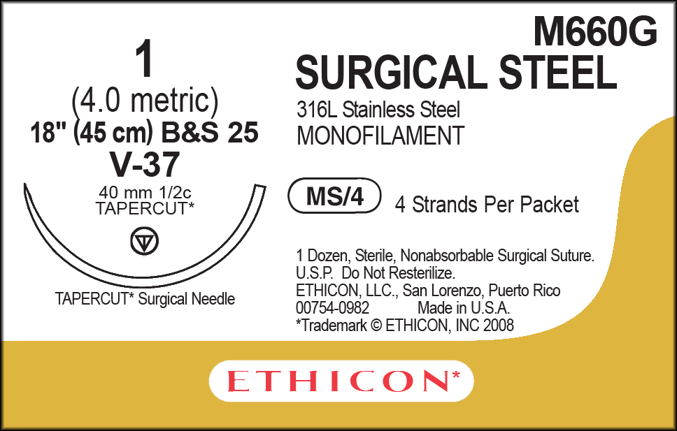 Suture, Tapercut, Size 1, 4-18", Monofilament B&S25, Needle V-37, ½ Circle, 1 Dz/Bx (Continental Us Only)