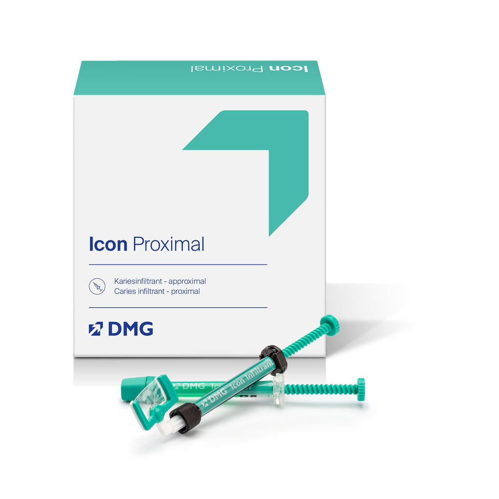 Icon Proximal Cube. Patient Pack Includes: (1) 0.30Ml Syringe Icon Etch, (1) 0.45Ml Syringe Icon Dry, (1) 0.45Ml Syringe Icon Infiltrant, (6) Proximal Tips, (1) Luer-Lock Tip, (4) Dental Wedges. 7 Patient Packs/Bx