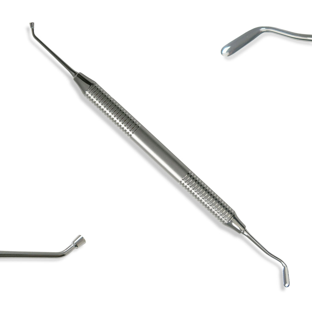 As the tool for the composite resin, the polished tip surface is smooth and lubrication-coated, so the composition resin is not sticky. The thin profile allows access to narrow interdental areas, especially for the aesthetic resin treatment.
