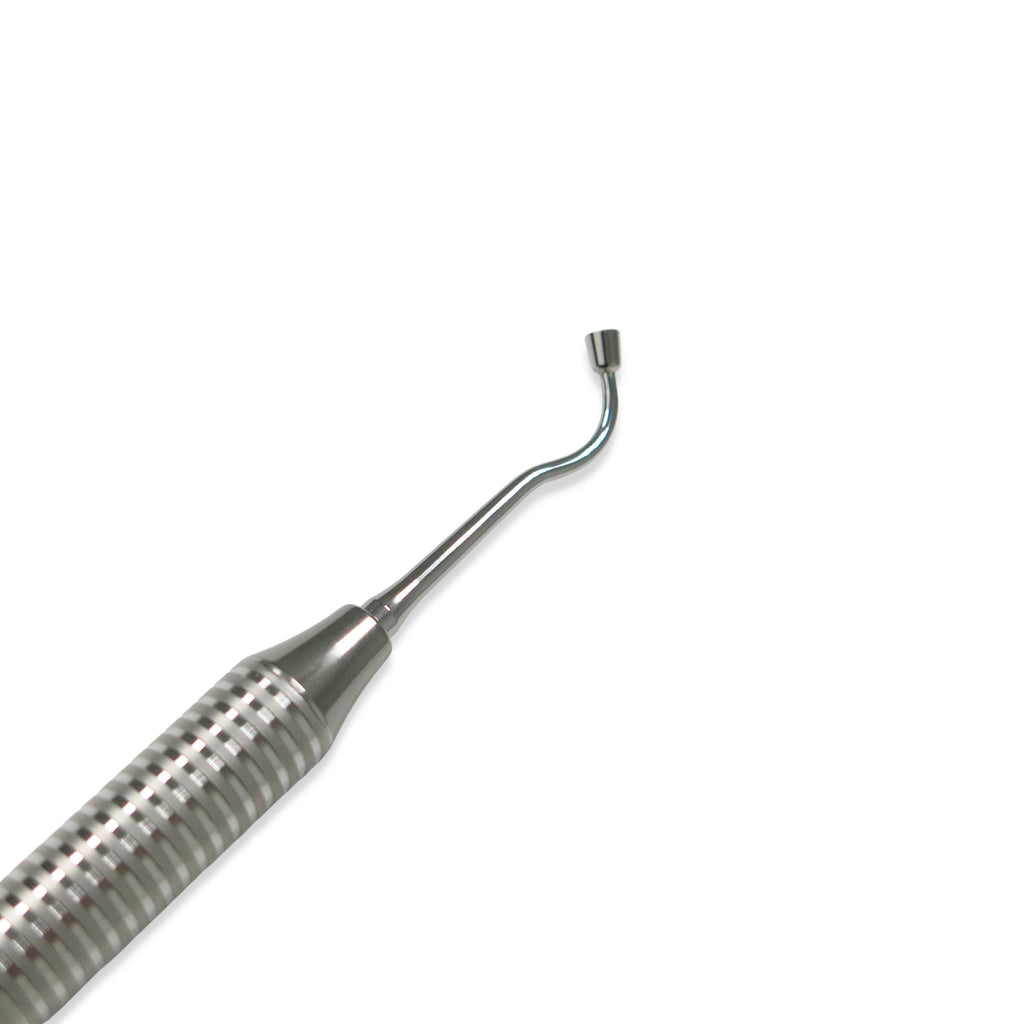 As the tool for the composite resin, the polished tip surface is smooth and lubrication-coated, so the composition resin is not sticky. The thin profile allows access to narrow interdental areas, especially for the aesthetic resin treatment.