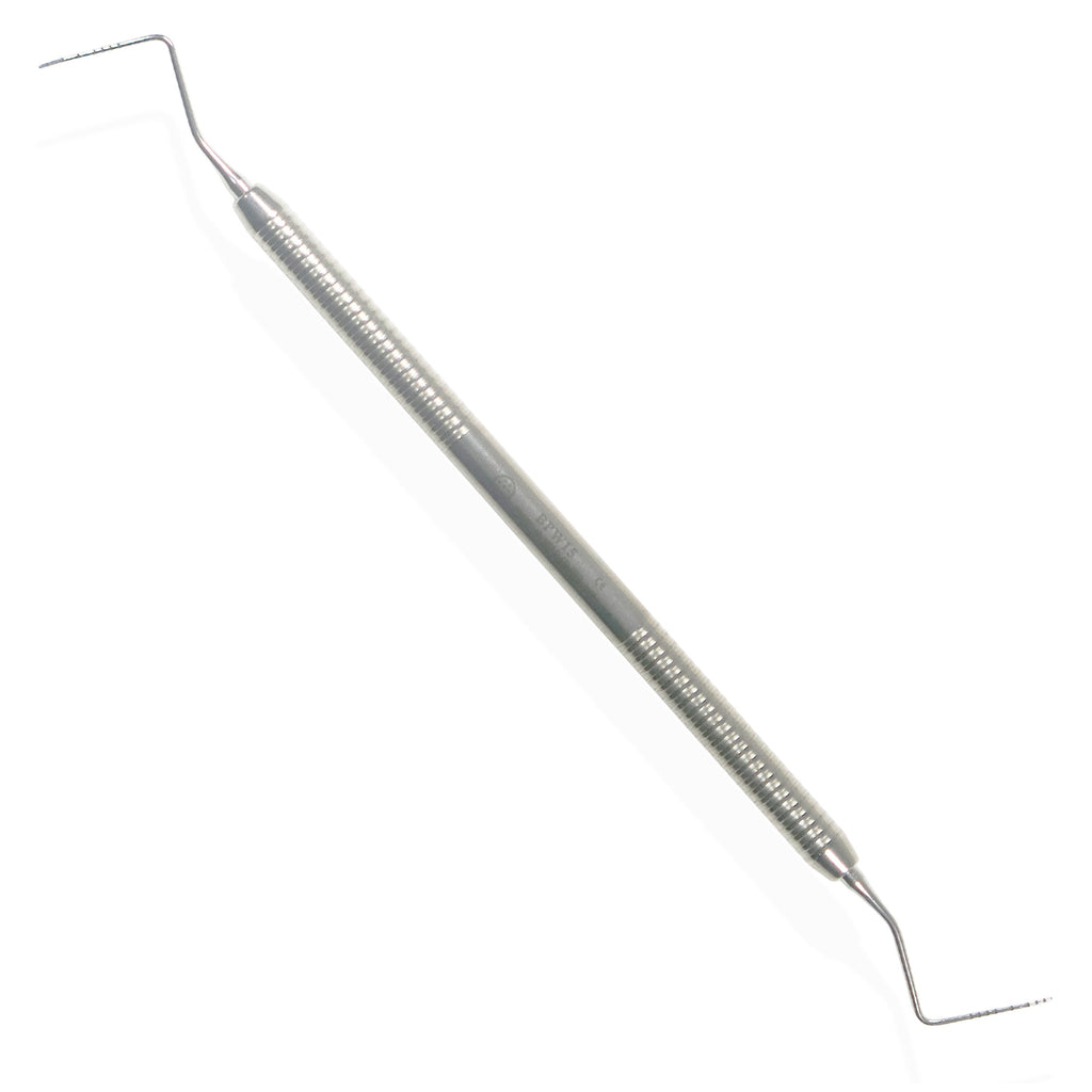 - Both tips are bent 15 Degrees at 3mm point from tip end. This helps to measure depth following curved teeth in status of a little opened mouth.
