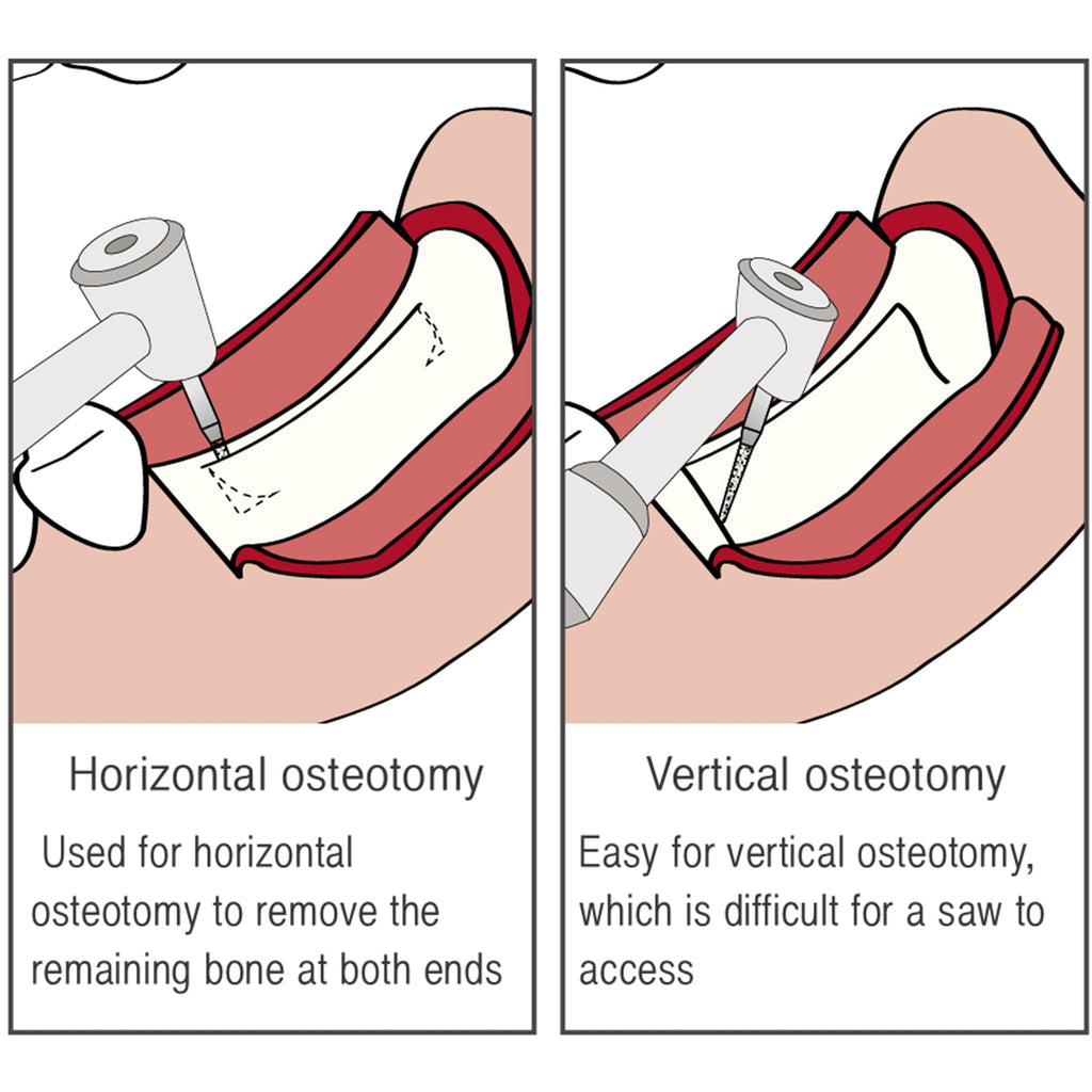 - Used for horizontal osteotomy to remove the remaining bone at both ends after Ridge split using a saw.