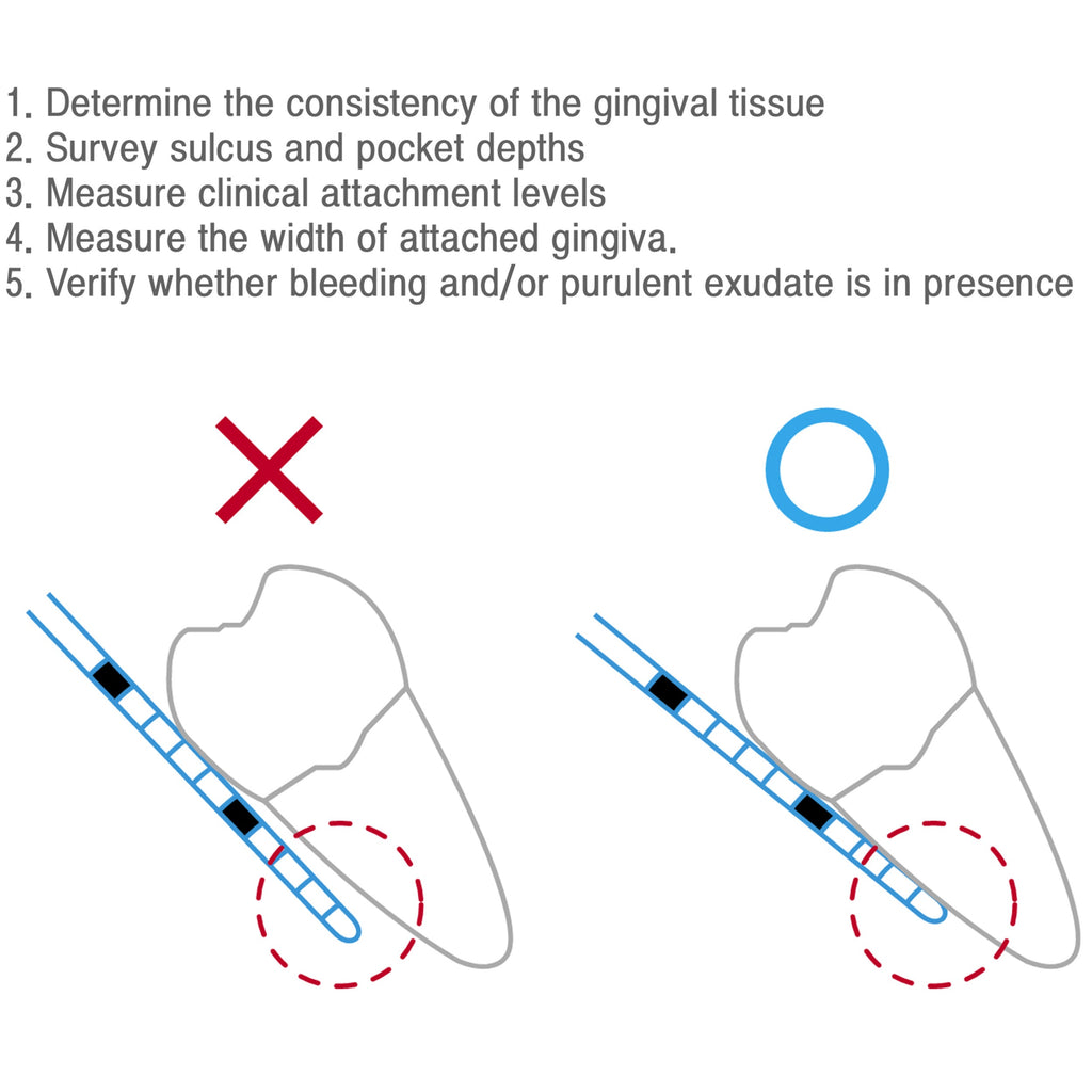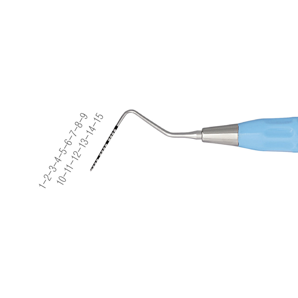 The working ends are marked in mm (1-2-3-4-5-6-7-8-9-10-11-12-13-14-15-16) for precise measurements. The calibrated probe is an instrument of assessment. The calibrated probe is used to